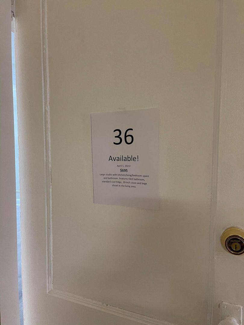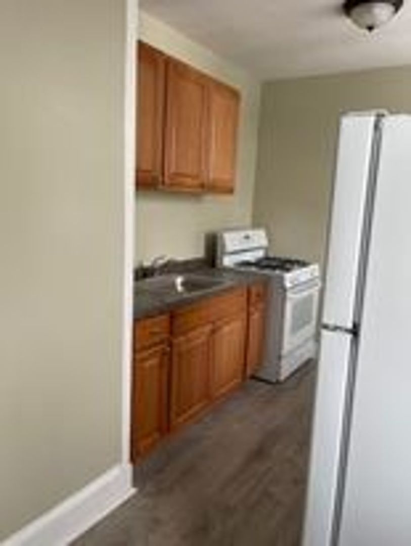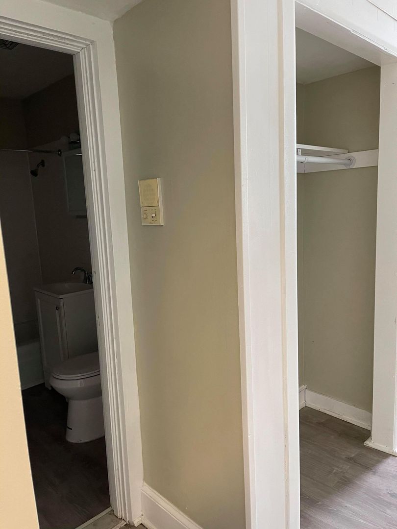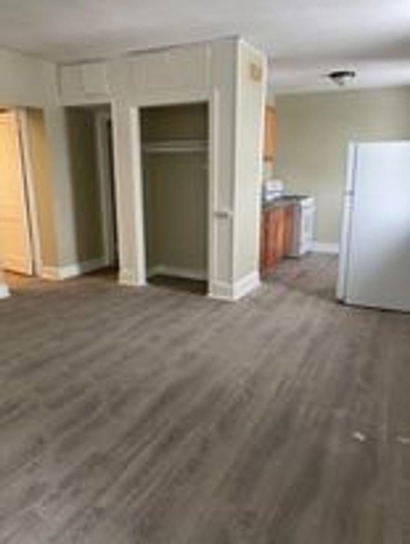Large studio with kitchen/living/bedroom space and bathroom. Features tiled bathroom, standard size fridge, 30-inch stove and large closet in the living area.