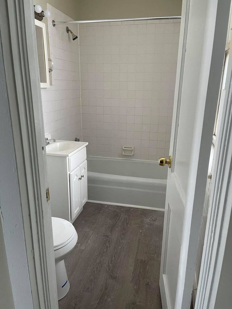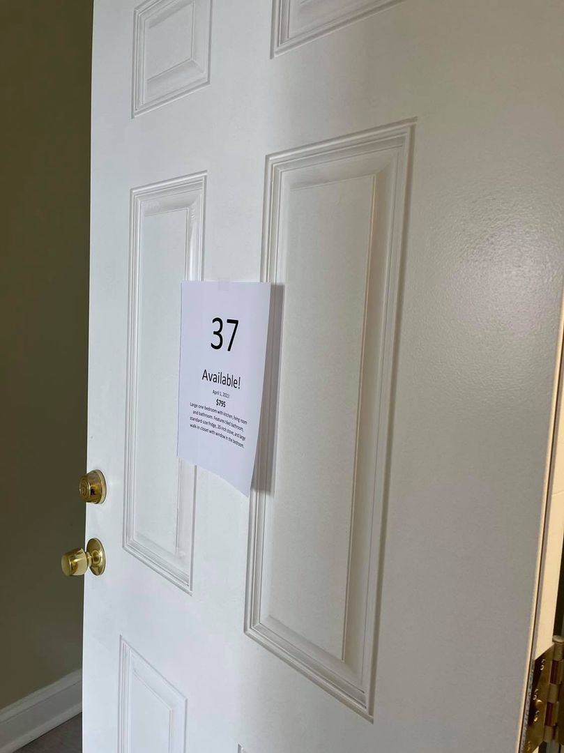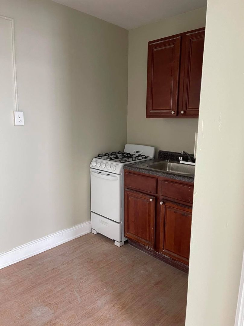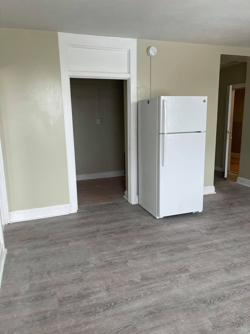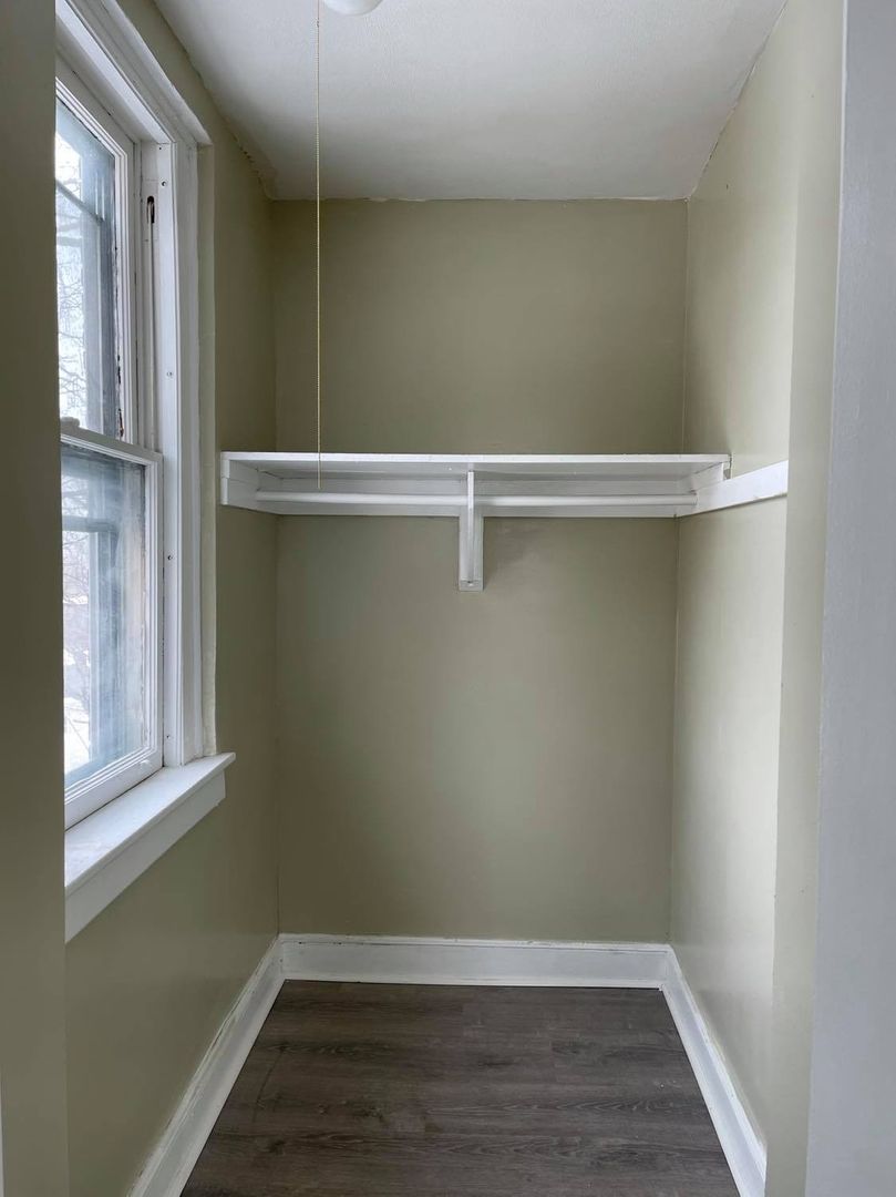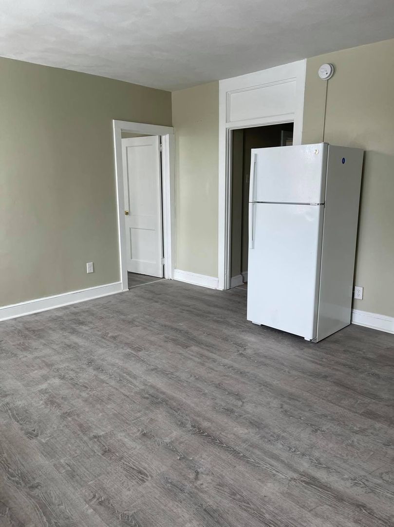 Large one bedroom with kitchen, living room and bathroom. Features tiled bathroom, standard size fridge, 20-inch stove, and large walk-in closet with window in the bedroom.